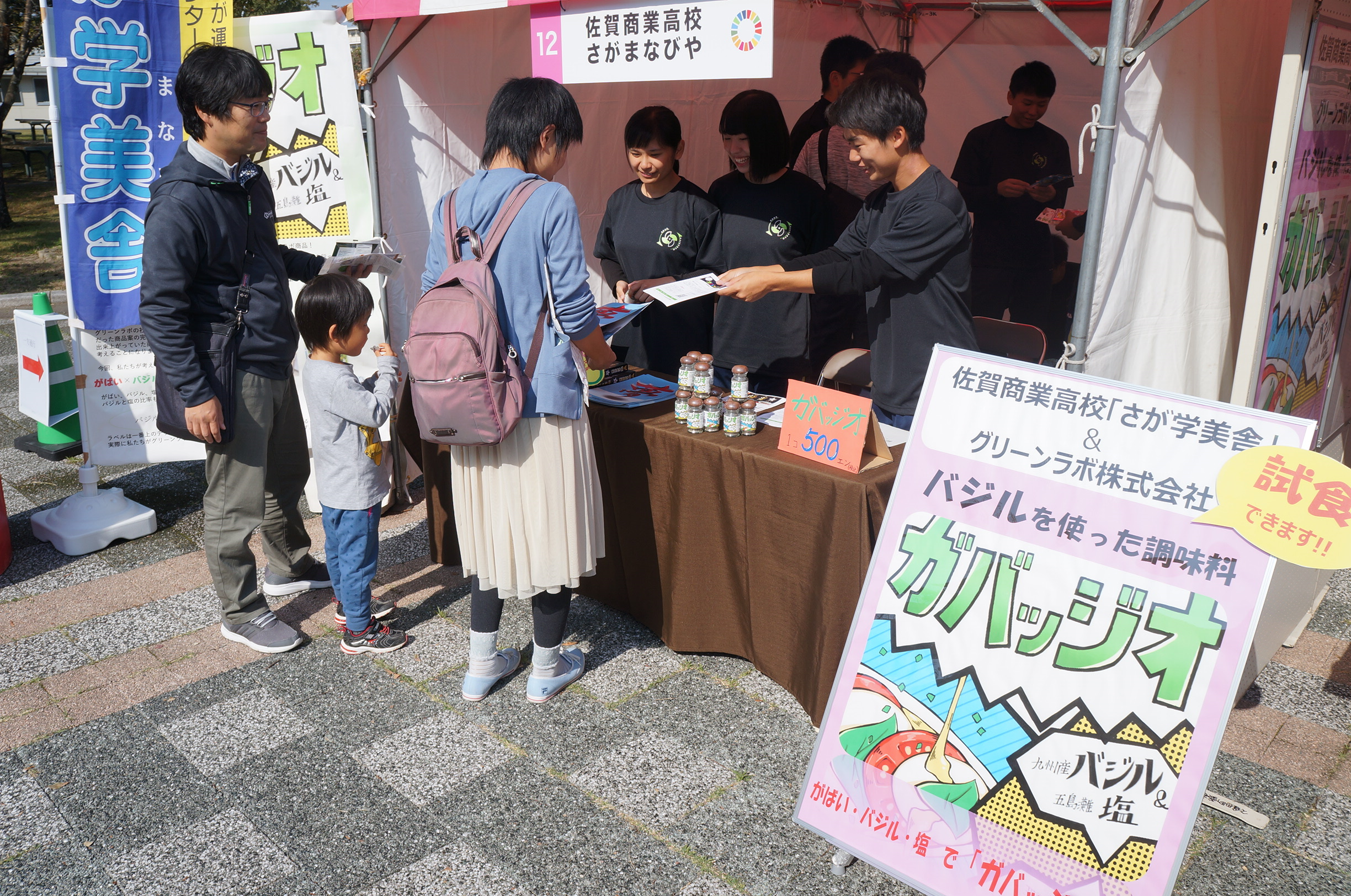 ㈱ミゾタは、植物性バイオマスから機能性有効成分を抽出する研究から生まれた「604」ブランドの基礎化粧品などを出品しました。「さが学美舎」は、佐賀市清掃工場由来の二酸化炭素を活用してバジル栽培を始めるグリーンラボ㈱と共同開発した、佐賀産バジルを使った調味料「ガバッジオ」を販売しました。有明未利用熱利用促進研究会は、パネルや模型などを用いて同研究会会員企業の地中熱を冷暖房に利用する技術などを紹介しました。