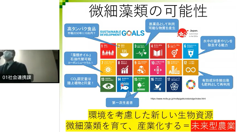 佐賀大学微細藻類バイオマス研究プロジェクトの成果発表会が7月25日、同大学で開かれました。オンラインを含めて学内外の約80人が参加。農学部、理工学部と医学部の4人の研究者が研究の成果を報告し、微細藻類の産業や医療への活用の可能性を示しました。