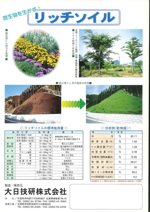 当社は、昭和59年(1984年)より堆肥製造を一貫して行っており、バーク堆肥の製造工場としては佐賀県で最大級となっています。 今後は従来のバーク堆肥製造だけではなく、堆肥に機能性を持たせた製品や、環境分野での活用について、研究開発を行っていきます。 |