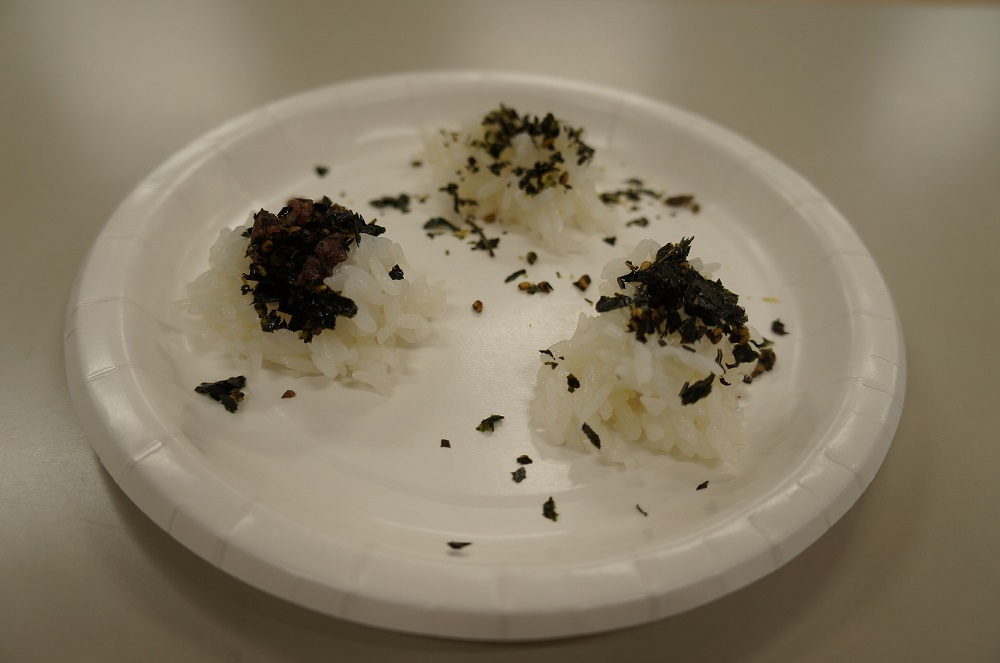 「ふりかけ」と「ペースト」は、コロナ禍で多くの人が家で過ごす時間が増える中、だれもが手軽においしく食べられる商品をつくろうと発案しました。「ふりかけ」は、乾燥バジルにごまや和風だしなど加えて炒め、海苔を加えたもので、「スタンダード」「エビ入り」「カルパス入り」の3種類を考案しました。「ペースト」は海苔とバジルソースを1対2の割合で混ぜ合わせています。
