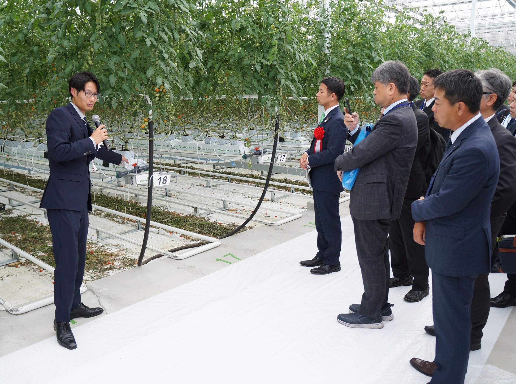 落成式で橋本社長は「国際情勢の悪化でエネルギー価格が高騰するなど施設園芸が厳しい状況に置かれる中、本農園のように循環型資源を活用する農業経営は今後の日本農業で重要な取り組みになると感じています」とあいさつ。坂井英隆・佐賀市長は「佐賀市は昨年、グリーン化推進戦略を策定し、清掃工場周辺をグリーンアグリバレーと位置付けてスマート農業を推進している。先進的な環境制御システムを用いるこの農園が、全国に誇るモデル的な取り組みとなってほしい」と期待を述べました。